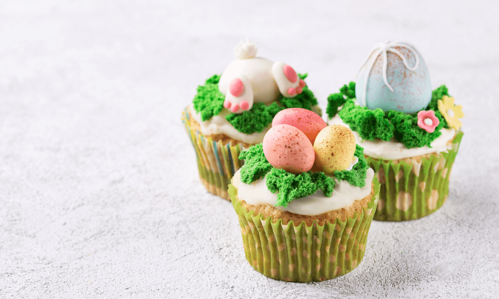 ✿ Papierowe opakowania na muffinki i babeczki – kolorowe, tematyczne wzory wielkanocne przyciągają wzrok klientów.
