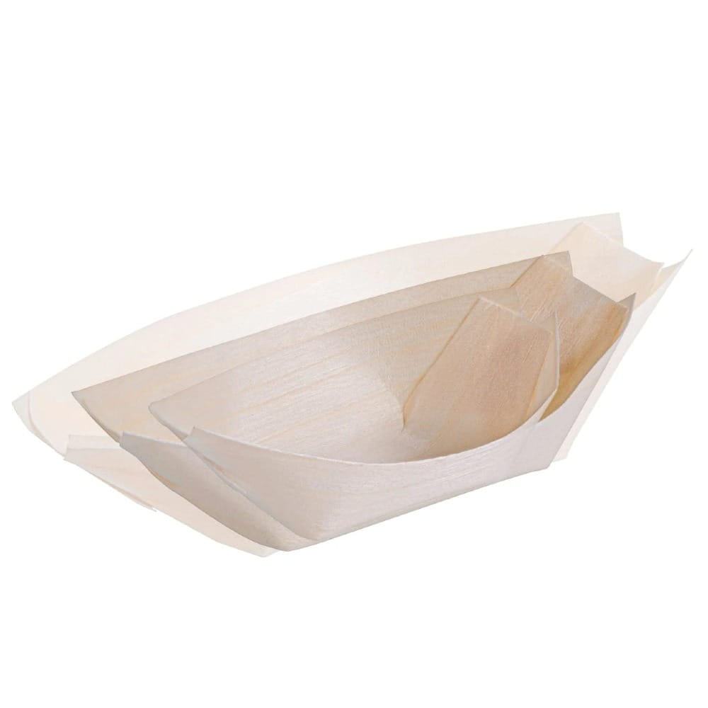 Drewniane tacki do przekąsek fingerfood Łódka, długość 11,5 cm - 100 sztuk - oryginalny sposób na serwowanie przystawek