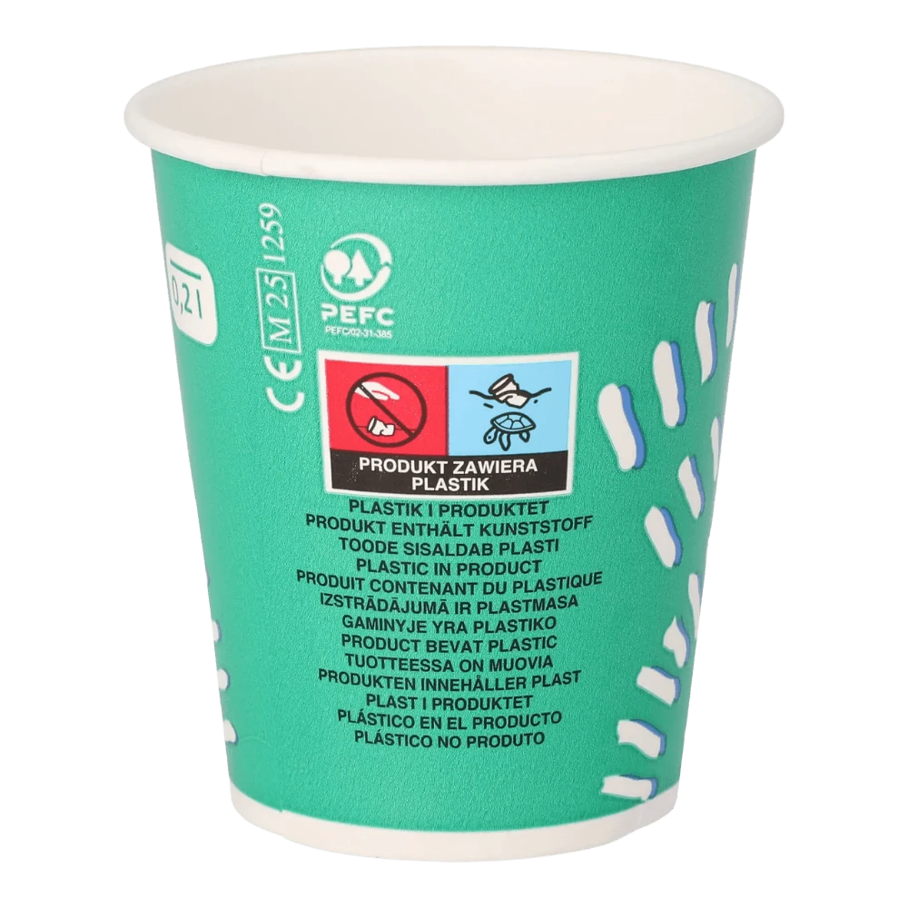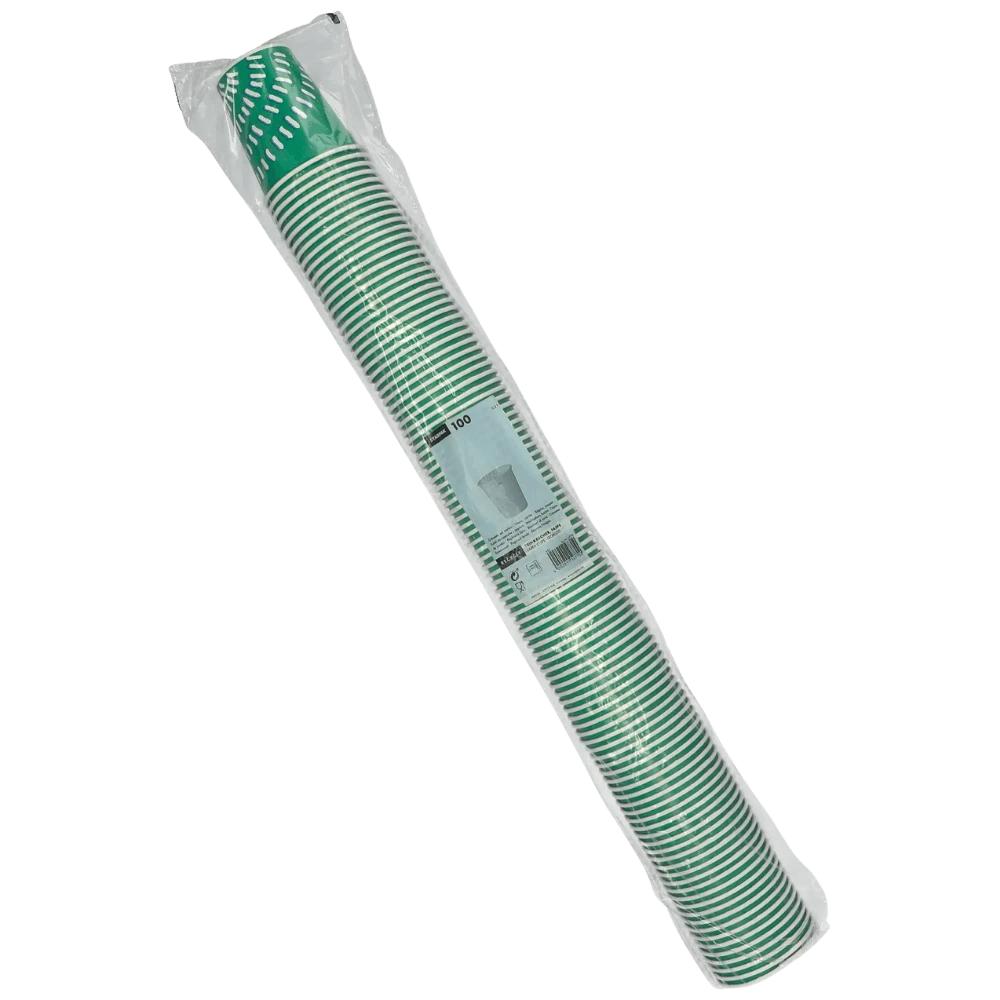 Kartonowy kubek do zimnych napojów z wzorem Rays, to wybór dla punktów gastronomicznych i organizatorów eventów szukających wyrazistego designu. Biały promienisty wzór na zielonym tle przyciąga wzrok i dodaje świeżości każdemu napojowi. Wykonany z tektury powlekanej PE o gramaturze 266 g/m², gwarantuje wytrzymałość przy serwowaniu zimnych napojów, soków czy lemoniady. Opakowanie 100 sztuk to solidny zapas na większe imprezy i intensywne dni w gastronomii.