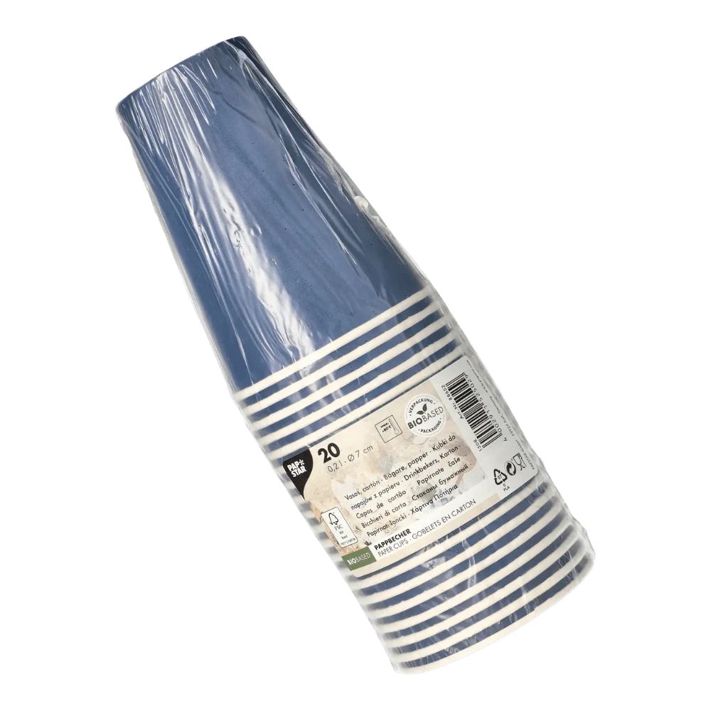 Kubki z papieru ciemnoniebieskie, fi 70 mm 0,2L - 20 sztuk - stateczny akcent na każdej imprezie