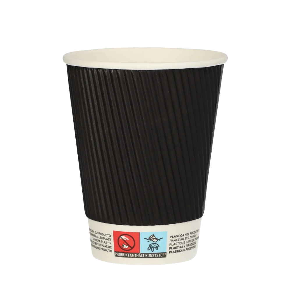 Kubki z papieru czarne Ripple Wall, fi 90 mm 0,3L - 25 sztuk - mniejszy format, ta sama ochrona przed poparzeniem