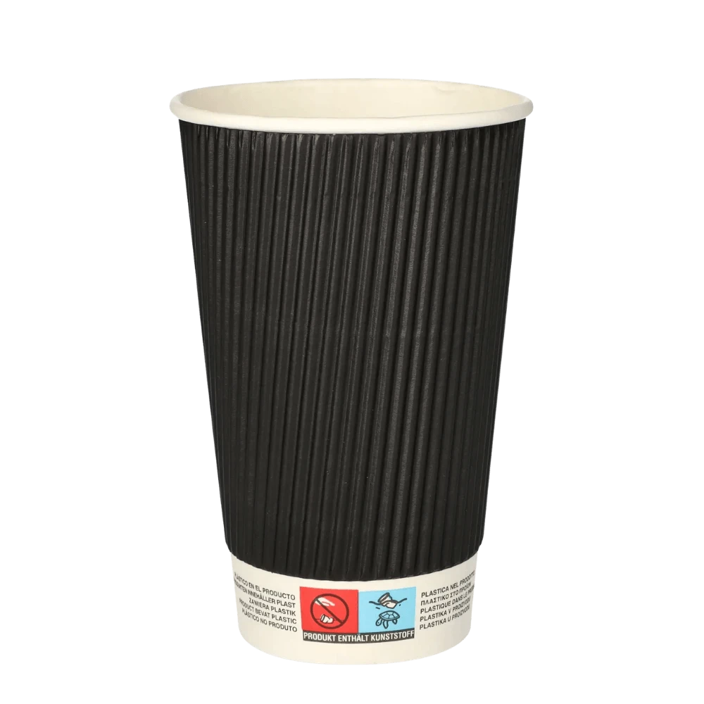 Kubki z papieru czarne Ripple Wall, fi 90 mm 0,4L - 25 sztuk - z taką gramaturą gorąca kawa nie parzy w dłonie