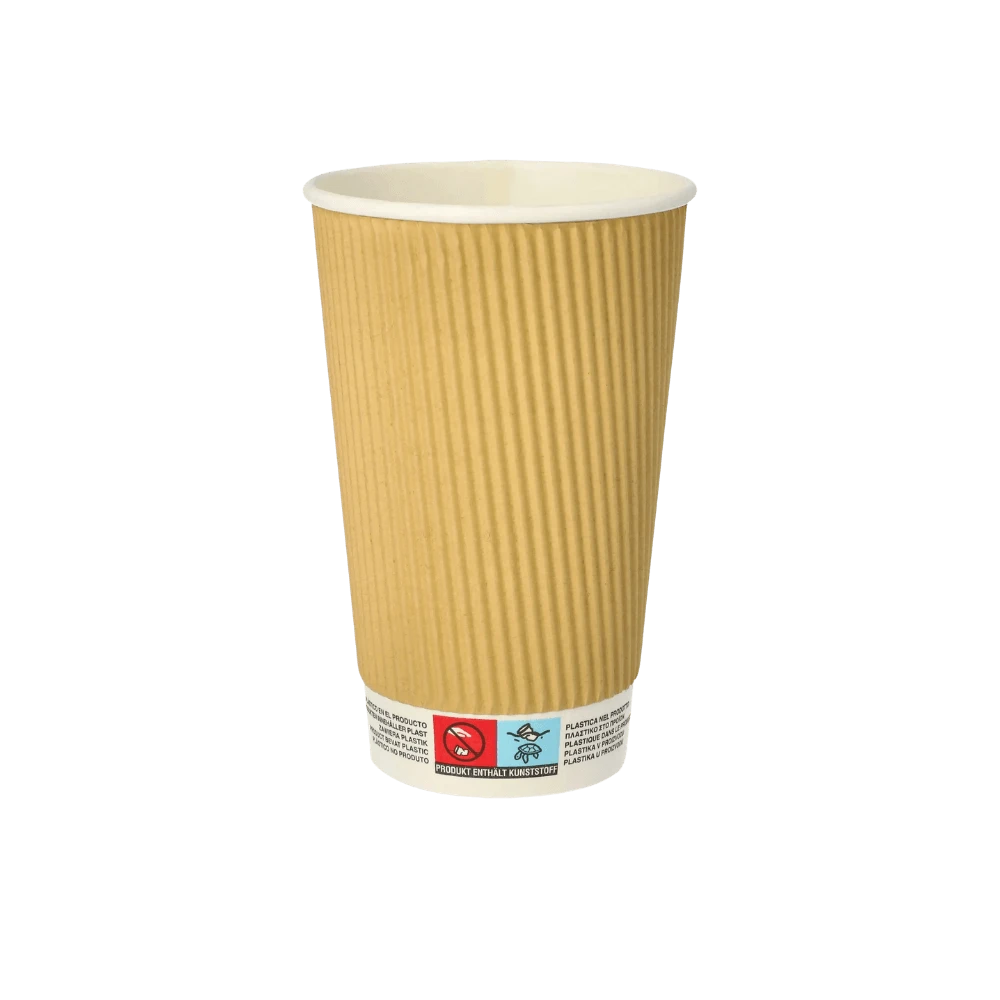 Papierowy kubek Ripple Wall w naturalnej kolorystyce kraft to propozycja dla lokali, które chcą połączyć ekologiczny wizerunek z funkcjonalnością. Falowana struktura zewnętrzna zapewnia izolację termiczną, co sprawia że gorący napój w ogóle nie parzy dłoni, a kubek bardzo wygodnie leży w ręce bez konieczności dodatkowej opaski. Wykonany z tektury powlekanej PLA o gramaturze 530 g/m², posiada certyfikat FSC® gwarantujący odpowiedzialne pochodzenie papieru.