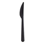 Czarne noże do wielokrotnego użytku Superior z PS, długość 18 cm - 50 sztuk - doskonałe na eleganckie przyjęcie w plenerze
