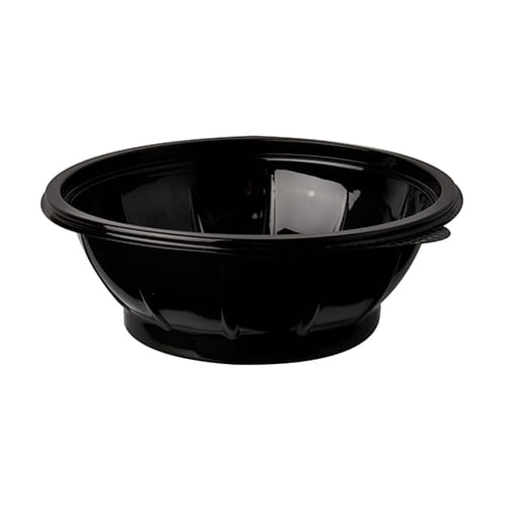 Czarne, plastikowe miseczki na sałatki, okrągłe, poj. 600 ml, średnica 16,6 cm, wysokość 5,9 cm - 50 sztuk - elegancki dodatek na każde przyjęcie