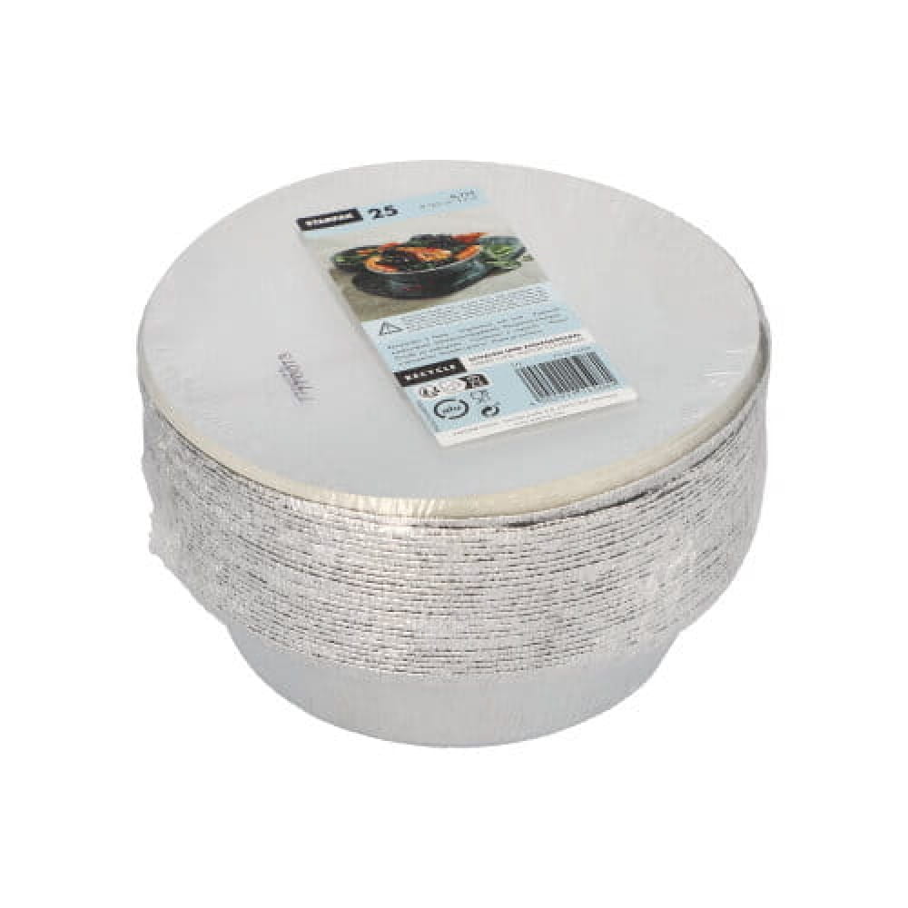 Okrągłe foremki aluminiowe z pokrywkami z tektury, poj. 770 ml, fi 18,2 cm, wys. 4 cm - 25 sztuk - trwałe i uniwersalne