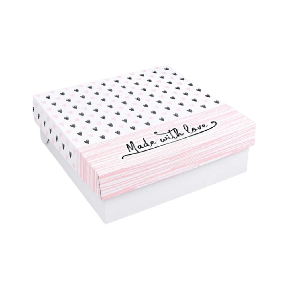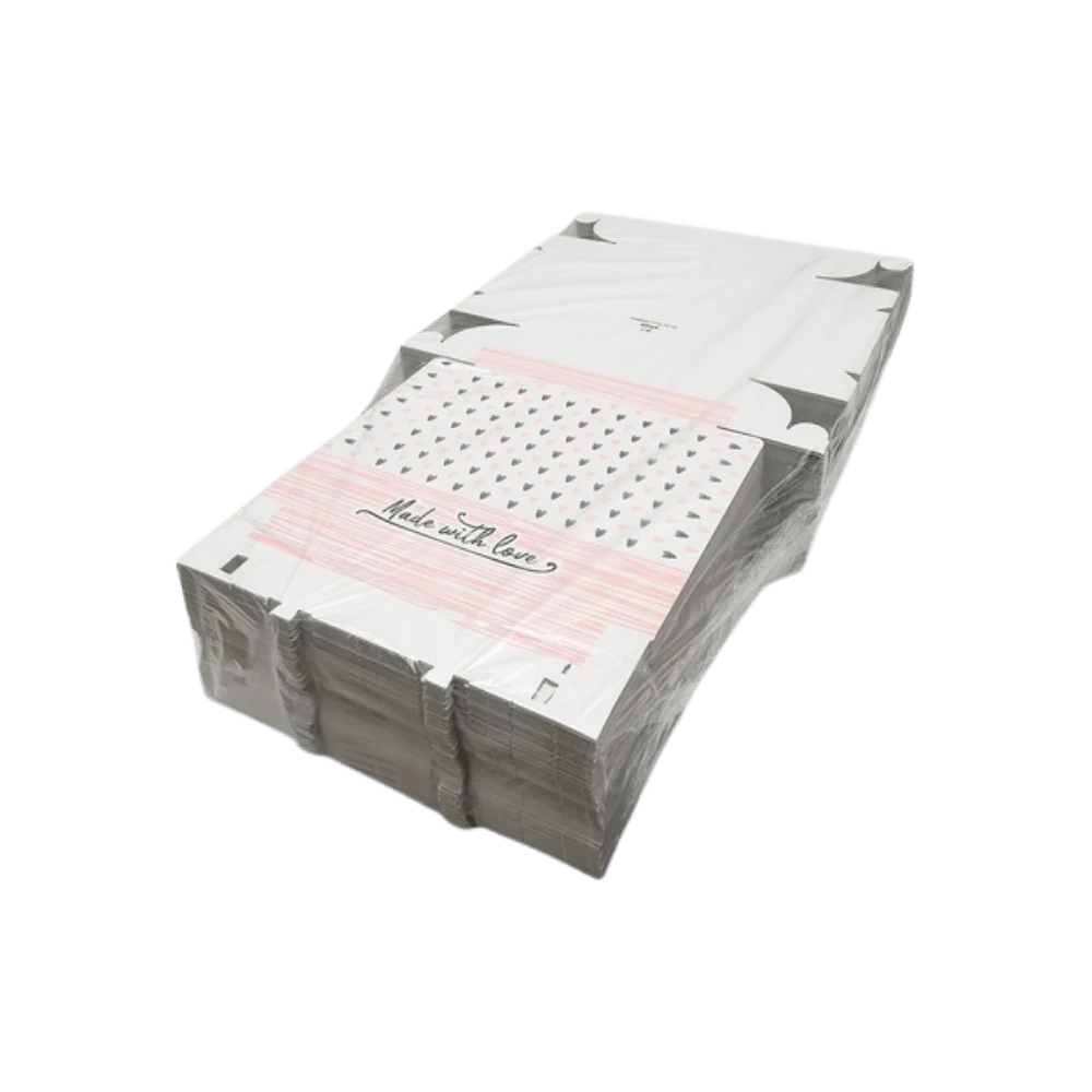 Pudełko na tort z mikrotektury falistej - białe z nadrukiem - 28 x 28 x 10 cm - 100 sztuk – eleganckie pudełko robiące wrażenie jeszcze przed otwarciem