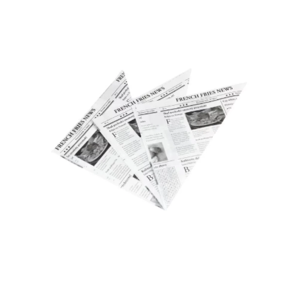 Rożki na frytki i inne przekąski 22 cm x 22 cm, nadruk GAZETA, papier tłuszczoodporny, powlekany PE - 200 sztuk - efektowne, wygodne, niezawodne