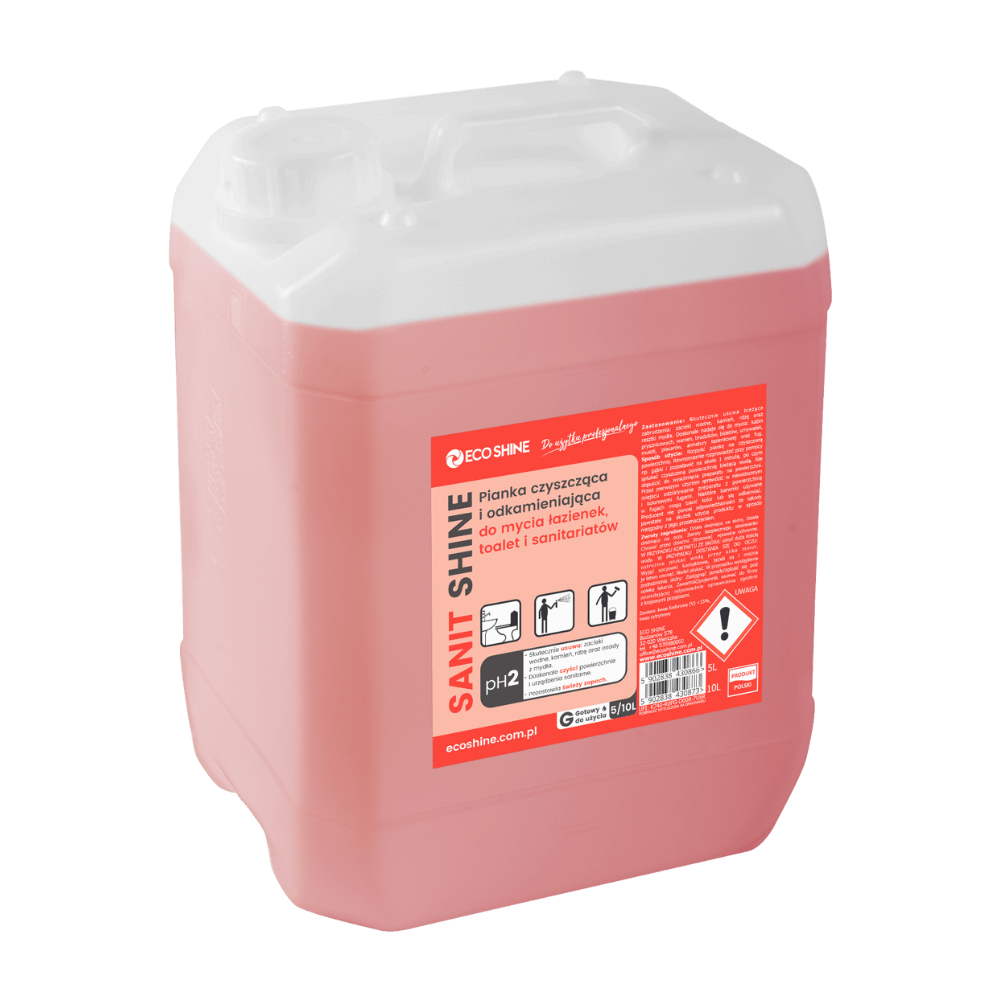 Utrzymanie nienagannej czystości w dziesiątkach łazienek w hotelu czy biurowcu wymaga rozwiązań, które są nie tylko skuteczne, ale i wysoce ekonomiczne. SANIT SHINE w 5-litrowym kanistrze to profesjonalna pianka czyszcząca i odkamieniająca, która stanowi bazę zaopatrzeniową dla firm sprzątających i działów utrzymania ruchu. To opakowanie uzupełniające, które gwarantuje stały dostęp do niezawodnego środka do codziennej pielęgnacji sanitariatów.