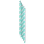 Papierowe słomki w biało-turkusowe paski, 3-warstwowe, długość 21 cm, fi 0,8 cm - 250 sztuk - subtelny kolor, ekologiczne wykonanie