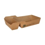 Prostokątne 2-komorowe tacki papierowe w kolorze kraft posiadają wiele plusów, a konkretnie: