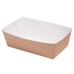 Duża i głęboka tacka papierowa o wymiarach 14,5 x 8 x 5,5 cm to najbardziej wszechstronne opakowanie na wynos z serii Snack Tray. Jej pojemny, łódeczkowaty kształt jest stworzony do serwowania całych dań obiadowych, obfitych sałatek i gorących posiłków, stanowiąc niezawodną i stylową alternatywę dla niewygodnych tacek plastikowych. To idealna tacka gastronomiczna dla lokali, które chcą podawać pełnowartościowe dania w ekologicznym opakowaniu.