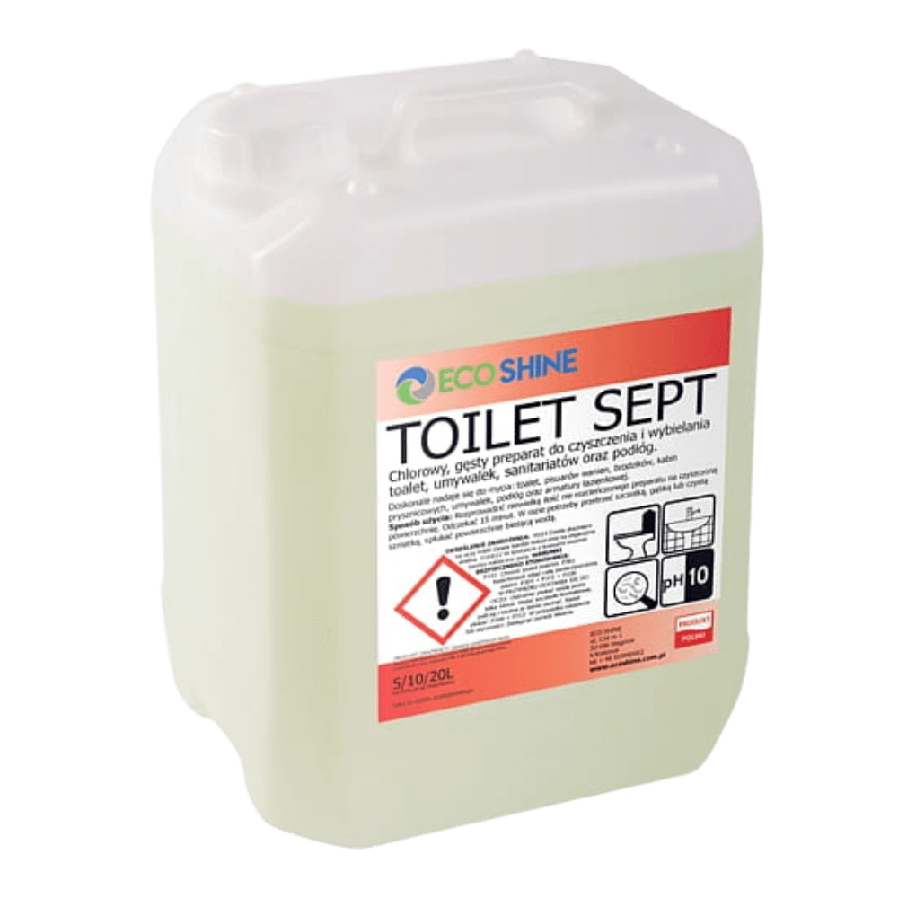 Utrzymanie identycznego, wysokiego standardu czystości w kilkudziesięciu toaletach w hotelu, biurowcu czy szpitalu wymaga niezawodnego i wydajnego systemu. TOILET SEPT w 5-litrowym kanistrze to profesjonalny żel myjąco-wybielający, stanowiący bazę zaopatrzeniową dla działów utrzymania ruchu i firm sprzątających, które nie akceptują kompromisów w kwestii higieny.