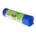 Worki na śmieci z folii LDPE z taśmą 35 l niebieskie – 15 szt. – praktyczne, szczelne i wygodne worki do codziennego użytku w domu, biurze i gastronomii