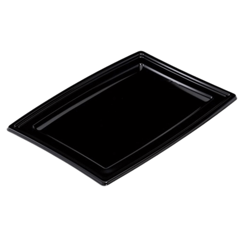 Czarny prostokątny talerz o wymiarach 46 × 30,5 × 1,8 cm to elegancka i funkcjonalna taca cateringowa z polistyrenu (PS), zaprojektowana do estetycznej prezentacji potraw podczas bankietów, eventów, wesel, konferencji oraz w profesjonalnych lokalach gastronomicznych. Dzięki dużej powierzchni doskonale sprawdza się do serwowania przekąsek, sushi, słodkich stołów, kanapek, ciast, owoców, serów, zimnych przystawek oraz kompozycji bufetowych. Podniesione brzegi chronią jedzenie przed zsuwaniem się w trakcie przenoszenia, co znacznie ułatwia obsługę podczas dużych wydarzeń.